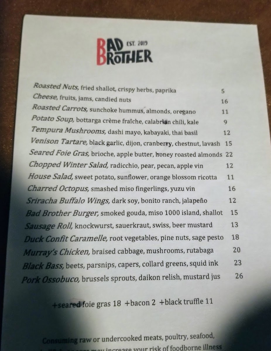 If you're craving a meal that hits all the right notes, you’ve got to check out the Bad Brother Menu. Nestled at 726 N 24th St, Philadelphia, PA, this spot offers a range of dishes that are as comforting as they are satisfying. Whether you're here for a hearty brunch or a casual dinner, there’s something for every taste. The menu features a delicious mix of classic comfort food with a twist, including fresh salads, savory sandwiches, and flavorful mains. Don’t forget to dive into their specials - each one is a reflection of the kitchen’s creativity and passion. From the first bite to the last, the flavors here are sure to make every meal memorable.
